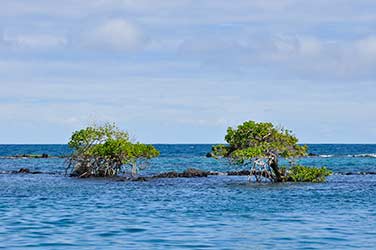 Desde la playa de Puerto Villamil se puede observar una gran variedad de flora y fauna, especialmente iguanas.