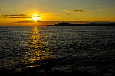 Las puestas de sol son únicas y especiales desde la playa de Puerto Villamil.